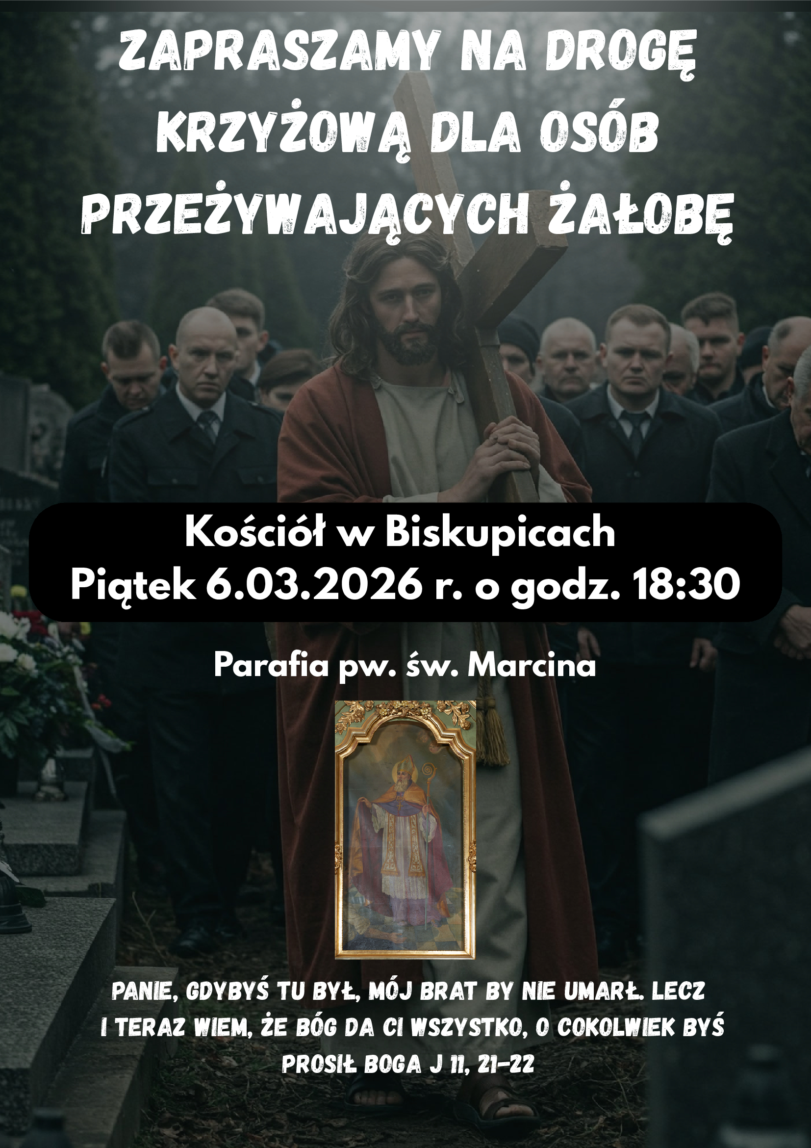Serdecznie zapraszamy na nabożeństwo Drogi Krzyżowej dedykowane szczególnie osobom dotkniętym żałobą po stracie bliskiej osoby.